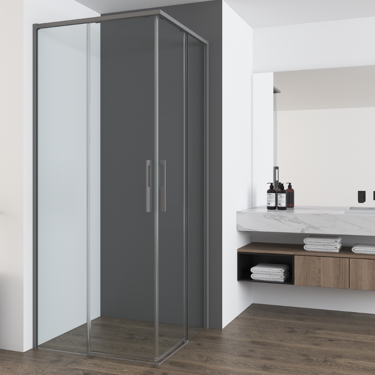 Душевой уголок прямоугольный. SLIDER-A-2-90/100-GRIGIO-NERO (900-1000)x(900-1000)x1950 Cezares